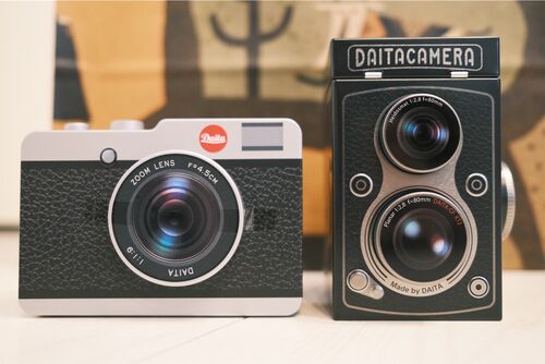 1人1台まで。2人で2台ゲットです。 2台とも、とても軽量です。 左はシャッターボタン。 右のは巻き戻しクランクでしょうか? 位置的にはシャッターダイヤルなのですが、、、 二眼は構造があまり解らないのですが、それらしい造りです。 では背面は!?と言う…